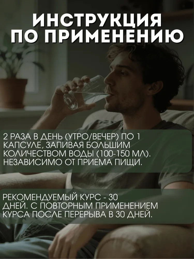 Курс приёма — 30 дней. Для достижения стойкого результата рекомендуется пройти полный курс, при необходимости его можно повторить через 2–3 недели.